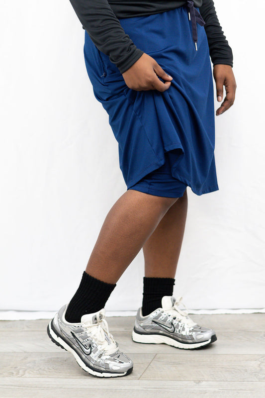 Two & Nine | Modest Athletic Skirt with Built-In Shorts | 24” Length, Drawstring Waist, Zipper Pockets | Black