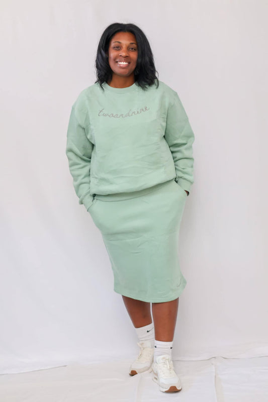 Two & Nine | Modest Cozy Sweatshirt & Skirt Set | Cream Fleece Lounge Set for Women