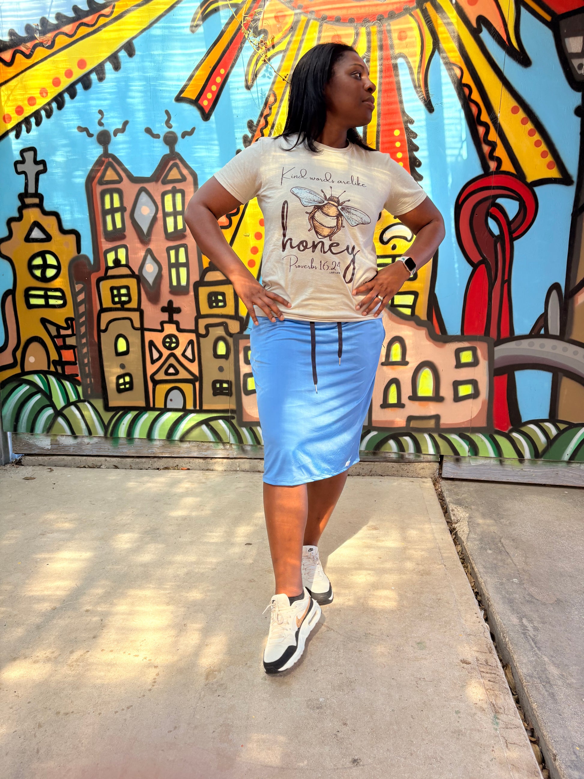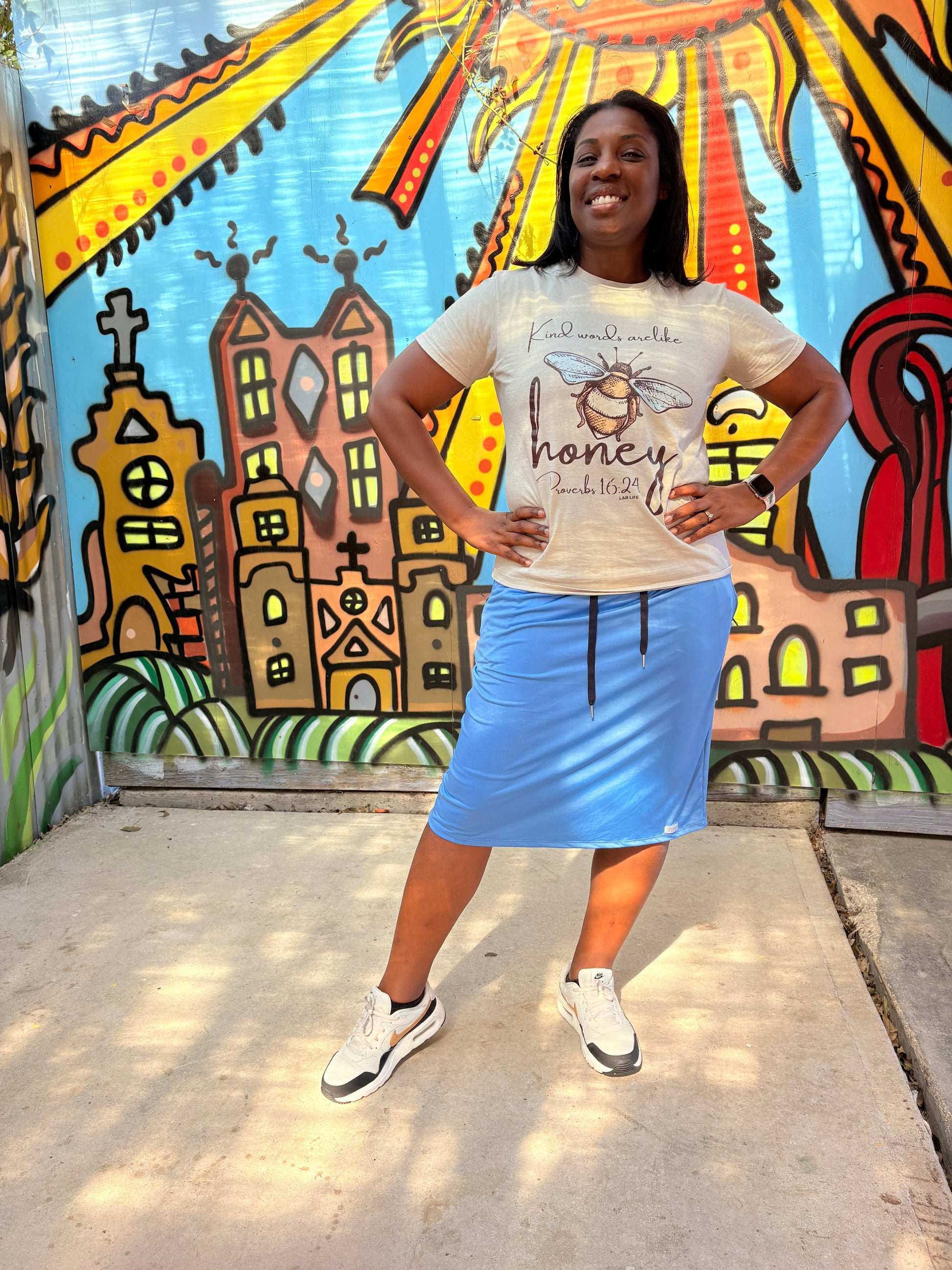 Women’s Modest Athletic Skirt with Pockets – Light Blue Performance Active Skirt with Drawstring | Two & Nine